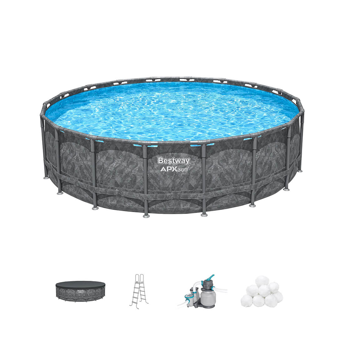 Каркасный бассейн Hydrium 732 см х 132 см, BESTWAY, 561RP, Винил, 49,200 л., Каркас из стального листа, Песочный ф-насос 58499 (8.327 л/ч), Интегрированный скиммер, Лестница 58332, Подложка, Тент 58039, Серый принт, Цветная коробка на паллете